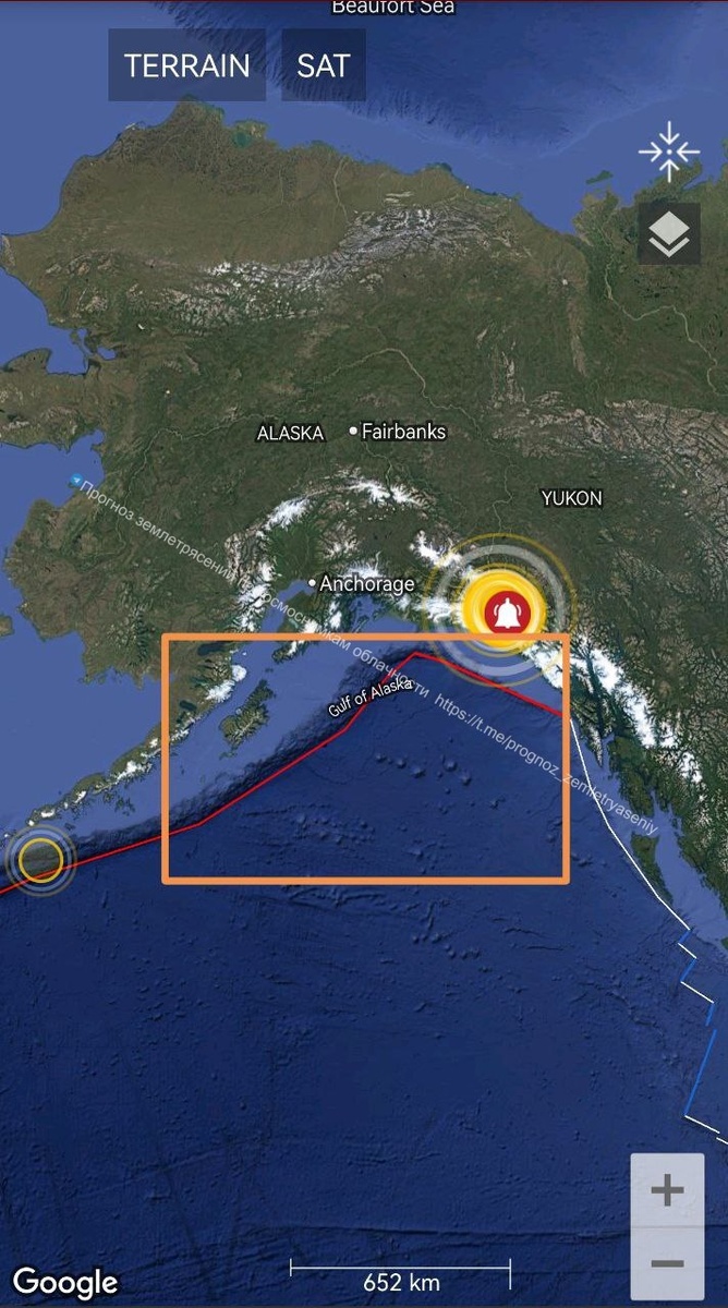 В ответ на пост По Аляске в течение 9 дней не исключено еще одно землетрясение М6.0-6.9 (афтершок) ===== Another M6.0-6.9 earthquake (aftershock) is possible in Alaska within 9 days
