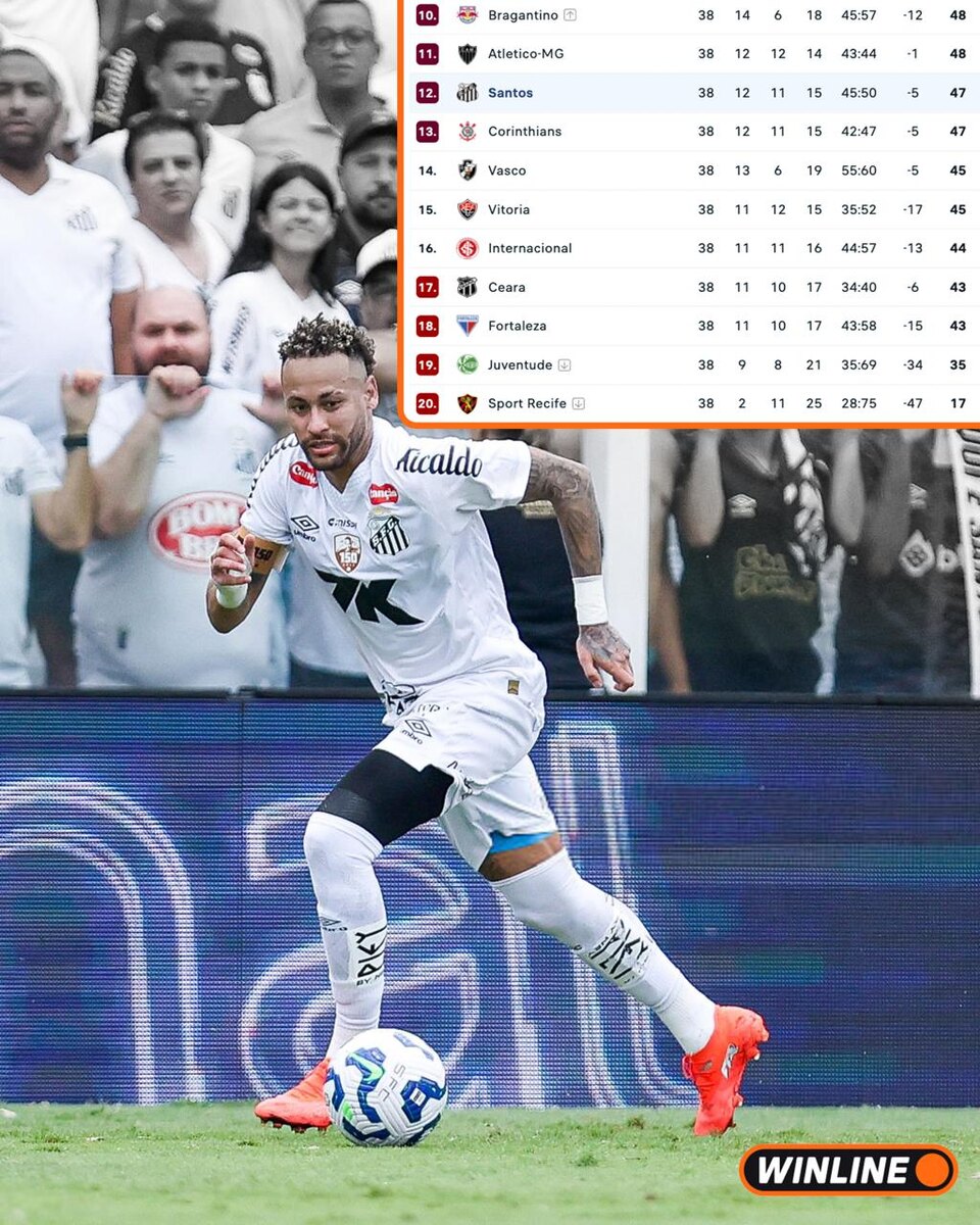 Неймар оставил Сантос в бразильской Серии А 👏 Борьба за выживание шла до последнего тура и была очень плотной. Но в решающем матче Сантос закинул трешку Крузейро и даже залетел в топ-12!