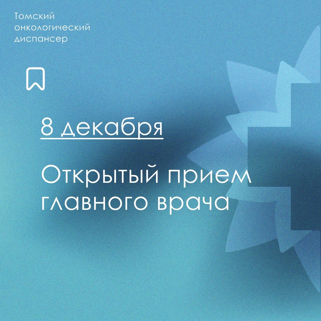 В понедельник, 8 декабря, пройдет открытый приём главного врача Томского онкологического диспансера Максима Юрьевича Грищенко. Обращаем внимание на необходимость предварительно записаться по телефону 8 (3822) 909-500. Оставить заявку для записи на открытый прием можно также в личных сообщениях сообщества во ВКонтакте [clck.ru/3Azw7G]. Открытый приём пройдет с 17:00 до 19:00 по адресу: И. Черных, 98Б, 3 этаж, кабинет 305. В четверг, 11 декабря, личного приема не будет.