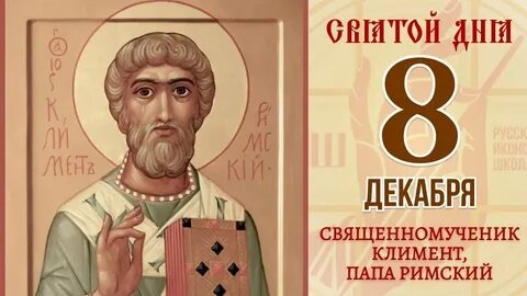 8 декабря 2025 года - понедельник, седмица 27-я Православная Церковь чтит память: — Отдание праздника Введения во Храм Пресвятой Богородицы — Священномучеников Климента, папы Римского (101) и Петра I, архиепископа Александрийского (311) — Преподобномученицы Магдалины (Забелиной), инокини (1931) -------------------------------------------- Поздравляем всех именинников с днем Ангела! Климент, Петр, Магдалина, Серафим, Григорий, Иоанн, Василий, Косма, Симеон, Иларион, Ярослав, Виктор, Андрей, Варлаам, Павел, Николай ---------------------------------------- 🍵 ПОСТ И ТРАПЕЗА 8 декабря 2025 г., понедельник, Рождественский пост ---------------------------------------- ИСТОРИЧЕСКИЕ СОБЫТИЯ — 8 декабря 1999 г. Россия и Беларусь заключили договор о создании Союзного Государства --------------------------------------------- 👀 ИНТЕРЕСНЫЕ ФАКТЫ ИЗ ЖИТИЯ СВЯТЫХ И ИСТОРИИ ПРАЗДНИКА — Священномученик Климент – апостол от 70-ти, четвертый епископ (папа) Рима родился в очень знатной семье, со
