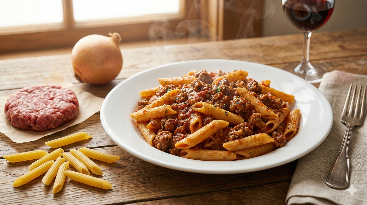 Этот набор можно растянуть на всю семью: макароны с фаршем — горячее, рисовая запеканка с овощами — альтернатива или обед на следующий день, творожная запеканка — сладкое без сложной выпечки. Блюдо 1. Макароны с фаршем на сковороде Ингредиенты (2 порции): Макароны — 180–200 г (сухие). Мясной фарш (свиной/куриный/смесь) — 200–250 г. Лук — 50–70 г (1 небольшая головка). Морковь — 50–70 г (по желанию). Масло — 1–1,5 ст. л. Томатная паста или соус — 1–2 ст. л. Соль, перец, приправы — по вкусу. Как готовить (кратко): Отвари макароны до состояния аль денте. На сковороде обжарь лук и морковь, добавь фарш, обжарь до готовности. Добавь томатную пасту, немного воды от макарон, специи. Всыпь макароны на сковороду, перемешай и прогрей пару минут. Примерная стоимость (2 порции): Макароны 200 г ≈ 40–60 ₽. Фарш 200–250 г (из расчёта 400–500 ₽/кг) ≈ 80–125 ₽. Лук, морковь вместе ≈ 8–15 ₽. Томатная паста, масло, специи ≈ 15–25 ₽. Итого: примерно 140–225 ₽ за 2 порции. Примерная калорийность: мака