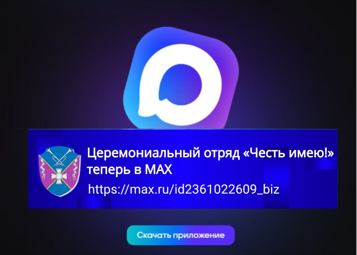 ВНИМАНИЕ 🤩Теперь главные события из жизни кадет Церемониального отряда «Честь имею!» можно узнать в нашем НОВОМ канале отечественного мессенджера MAX!!! 🛜Переходите по ссылке, подписывайтесь на нас в МАХ!!! Мы по прежнему остаемся в уже привычных для наших друзей и партнеров в социальных сетях: Мы по прежнему остались в соц.сетях: 📶 ВКонтакте 📶 Telegram 🇷🇺 МАХ Расскажи друзьям, поделись ссылкой на наш главный канал в МАХ! Давайте соберём всех друзей в одном месте!🤝