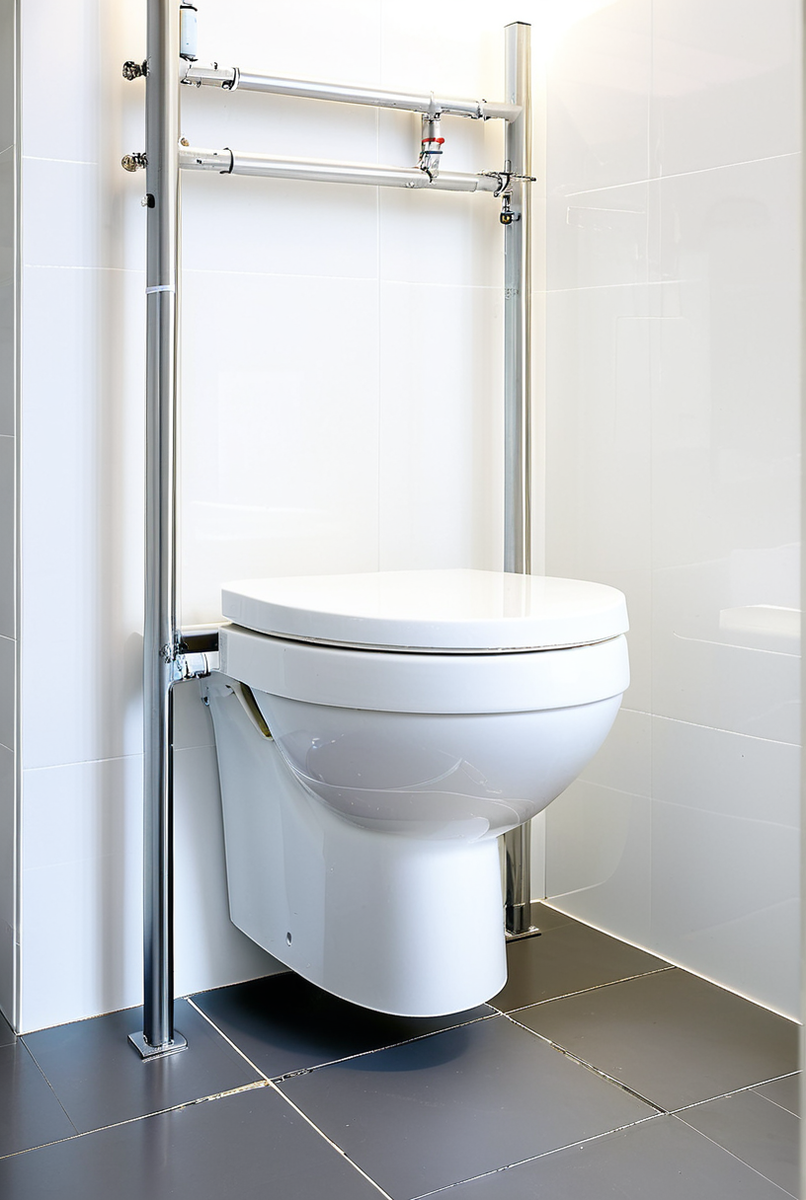 - Блочная инсталляция не имеет рамы и полностью передает нагрузку от чаши и пользователя на стену. Поэтому ее монтаж возможен исключительно при наличии прочного основания — требуется крепление к капитальной стене из бетона или полнотелого кирпича. Установка на легкие перегородки категорически запрещена.
