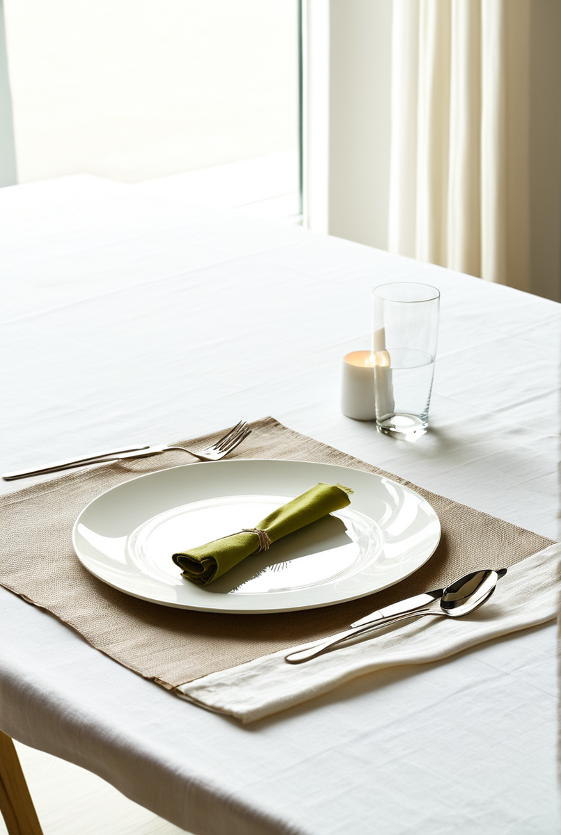 - Минимализм: строгость форм и чистота цвета․ Подойдут однотонные прямоугольные салфетки из качественного пластика, кожи или плотного хлопка без рисунка․