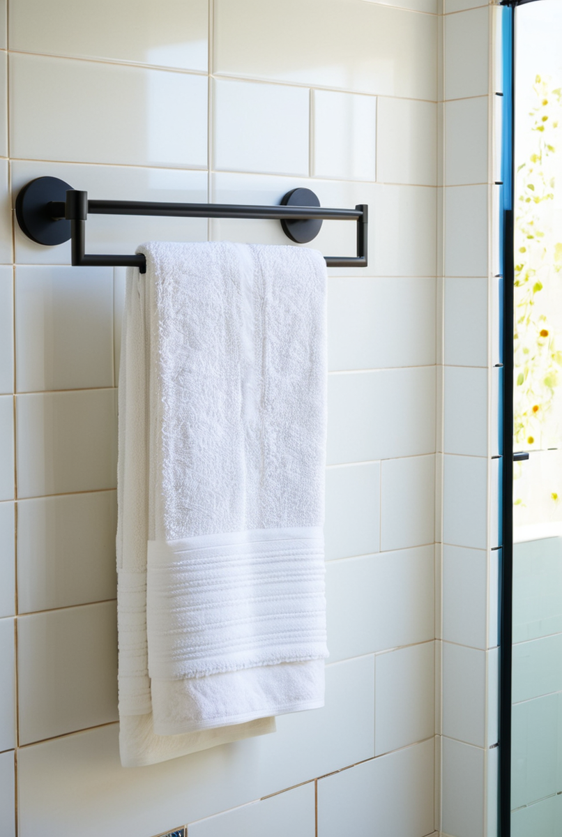 Чтобы выбрать идеальный полотенцедержатель, оцените функциональность и эргономика. Этот аксессуар для ванной комнаты важен для санузел. Выбор конструкции — ключевой шаг. Классическая двойная штанга имеет две параллельные перекладины, идеальные для сушки банного полотенца и полотенца для рук. Для небольших помещений оптимален поворотный кронштейн, у которого есть два рожка, вращающихся независимо. Максимальную функциональность предлагает двухъярусный полотенцедержатель, часто оснащенный верхней полкой для хранения чистых полотенец. Это уже не просто вешалка, а целый органайзер. Важнейший параметр — это расстояние между штангами. Чтобы банное полотенце и полотенце для рук сохли быстро, оно должно быть не менее 7-10 см для свободной циркуляции воздуха. Такая сушилка для полотенец очень важна для ванной комнаты. Дизайн и долговечность зависят от материала. Нержавеющая сталь и хром популярны. Латунь, бронза и черный матовый металл — стильные. Эта вешалка для полотенец, ключевой элемент, зад