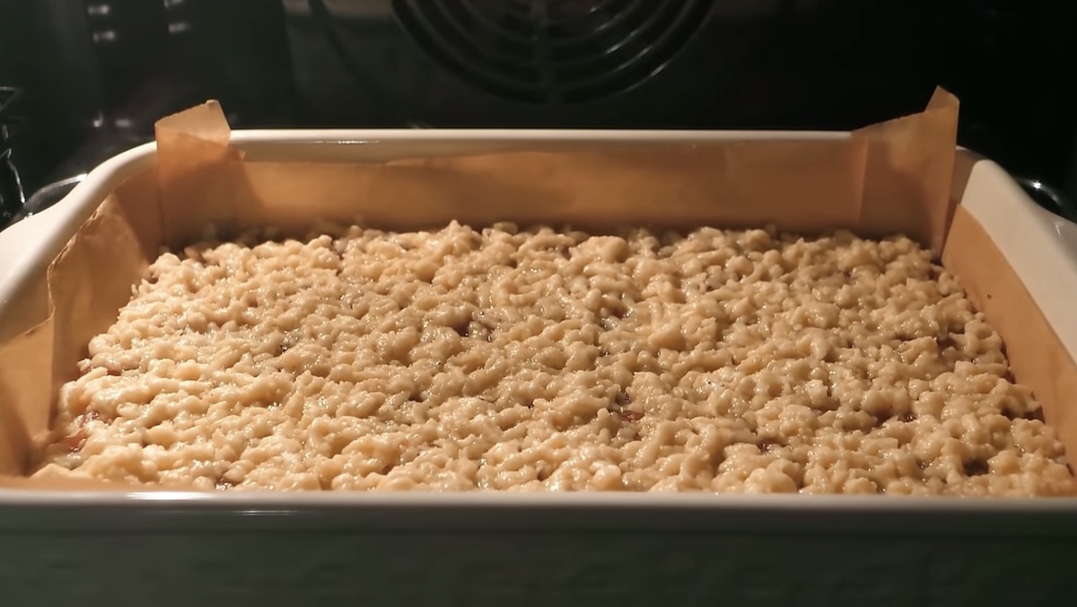 Получится эффектная крошка, под которой скрывается ароматный слой фруктов.