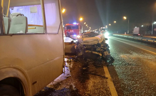 Такси, легковушка и автобус столкнулись на Мурманском шоссе