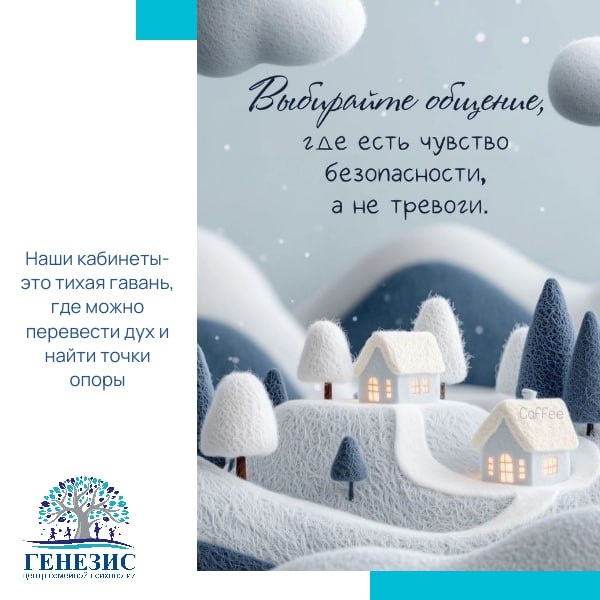 Наши кабинеты — это тихая гавань, где можно перевести дух и найти силы для праздника Декабрь — самый насыщенный месяц в году: планы, покупки, ожидание чуда и... накопленная усталость. Иногда в этой праздничной суете так важно просто остановиться. Сделать вдох. Услышать себя. Наши кабинеты созданы именно для этого — чтобы вы могли: 🔹 Перевести дух в тишине и безопасности 🔹 Разобрать по полочкам накопившийся стресс 🔹 Найти опору внутри себя 🔹 Восстановить силы для самого светлого праздника Что вас ждет в центре семейной психологии «Генезис»: ✨ Пространство без оценок и советов — только ваши мысли и чувства ✨ Возможность говорить обо всем — от бытовых сложностей до экзистенциальных вопросов ✨ Профессиональная поддержка в поиске ваших личных ресурсов ✨ Теплая атмосфера, где можно снять маску «всесильного взрослого» К нам приходят, чтобы: Выйти из состояния «вечной усталости» Научиться справляться с тревогой и раздражением Восстановить отношения в семье Просто побыть собой — б
