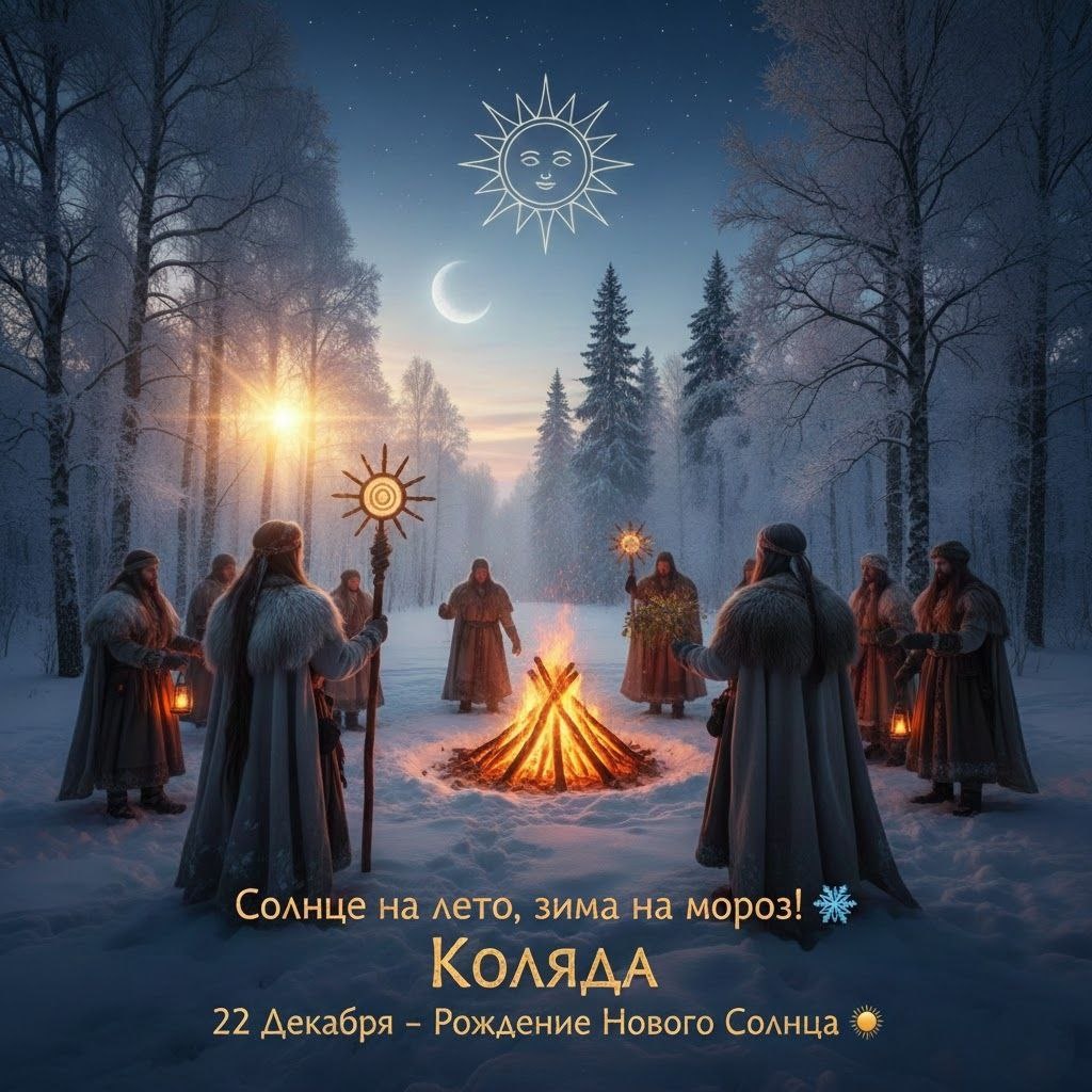 Солнце на лето, зима на мороз! ❄️ Вот и подошло время главного поворота года — Солнцеворота, или, как называли его предки, Коляды! 22 декабря — самая длинная ночь. Кажется, тьма достигла пика... но именно в этот миг рождается новое Солнце. ☀️ Это не просто астрономическое событие. Для наших предков это был сакральный момент смерти старого и рождения нового света, великий праздник обновления мира. С сегодняшнего дня мы начинаем готовиться к этой магической ночи. Вы уже чувствуете, как энергия вокруг меняется? #Солнцеворот #Коляда #СлавянскиеТрадиции #ЗимнееСолнцестояние