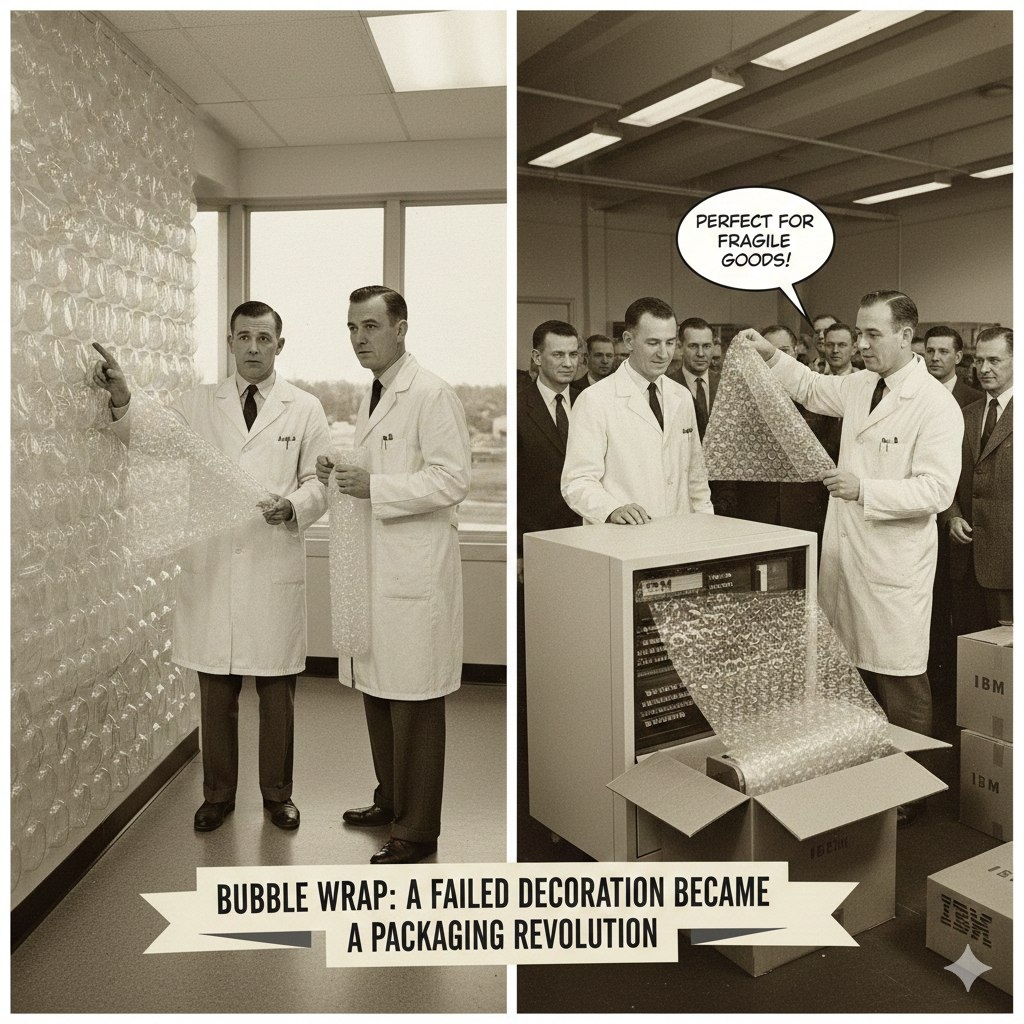 💡 История одной вещи: пузырчатая пленка была изобретена как 3D-обои 🫧🖼️🤯✨ Да, лопание пузырьков — чистое удовольствие! 💥 Но знали ли вы, что этот материал 📦 изначально предназначался для стен? 😅 Год и место. 1957 год, США. 🇺🇸 Главные герои: инженеры Альфред Филдинг и Марк Чаванн.🧑🔬 Факт. Инженеры пытались создать пластиковые, легко чистящиеся 3D-обои с воздушными пузырьками. 🖼️ Обои получились некрасивыми, попытка продать их провалилась. ❌ Несколько лет спустя Чаванн понял, что воздушная прослойка отлично защищает предметы и изолирует. Он предложил использовать пленку как упаковочный материал для хрупких товаров. 📦🛡️ 📢 Первым массовым клиентом стала компания IBM 🖥️ для защиты своих компьютеров! 🔥 Великие изобретения часто начинаются с провала в другой области.💡🚀