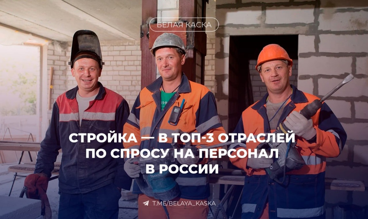 🪖 Стройка — в топ-3 отраслей по спросу на персонал в России — Superjob