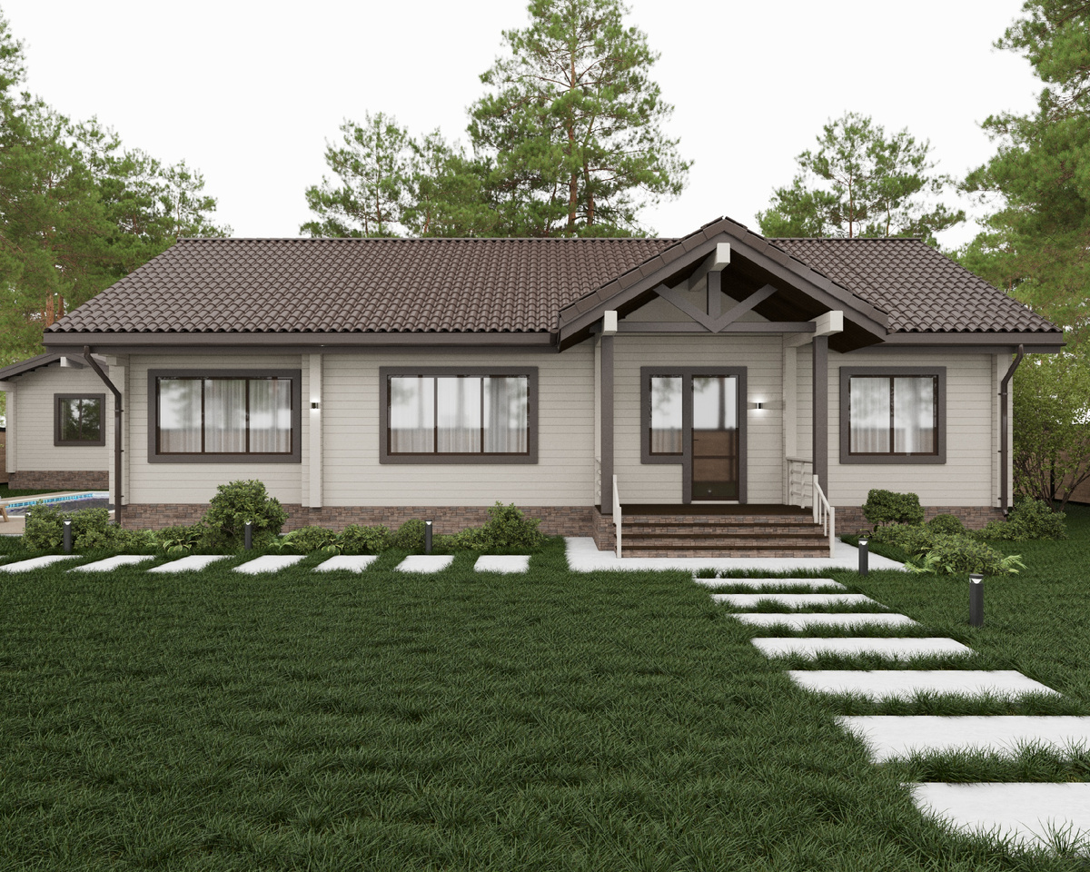 Сегодня расскажем о вместительном одноэтажном доме из клеёного бруса, площадью 161 м². Проект КБ - 1 мы создавали для семьи из 4-6 человек - с акцентом на комфорт и удобство в повседневной жизни. Продуманная планировка: В доме предусмотрено всё необходимое для постоянного проживания: 3 спальни, просторная кухня-гостиная, где удобно собираться всей семьёй, вместительный холл большая ванная, гардеробная для удобного хранения одежды, техническое помещение для инженерных систем. Все зоны продуманы так, чтобы жить здесь было удобно и по - домашнему уютно. Архитектура КБ - 1 выполнен в современном стиле: лаконичные линии, большие окна, гармоничные пропорции и естественные материалы. Такой дом выглядит современно, но при этом сохраняет естественное тепло дерева. Понравился дом? Заполните форму по ссылке - и мы вышлем вам презентацию проекта КБ-1 с планировкой, сориентируем по стоимости и вариантам комплектации. Также расскажем, как адаптировать его под ваш участок и пожелания.