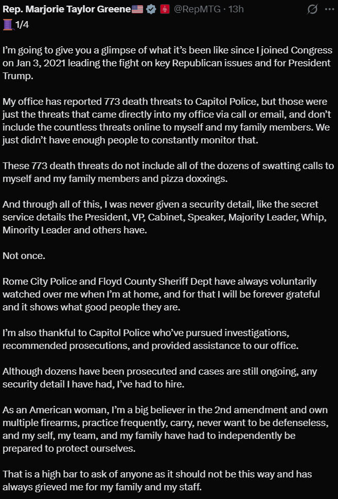 MTG reveals 773 death threats 'not including family pizza doxxings'