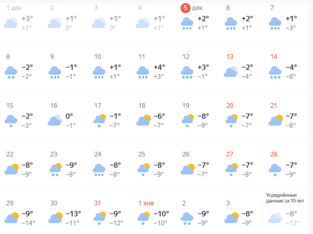 Подробный прогноз погоды в Костроме на декабрь 2025 года