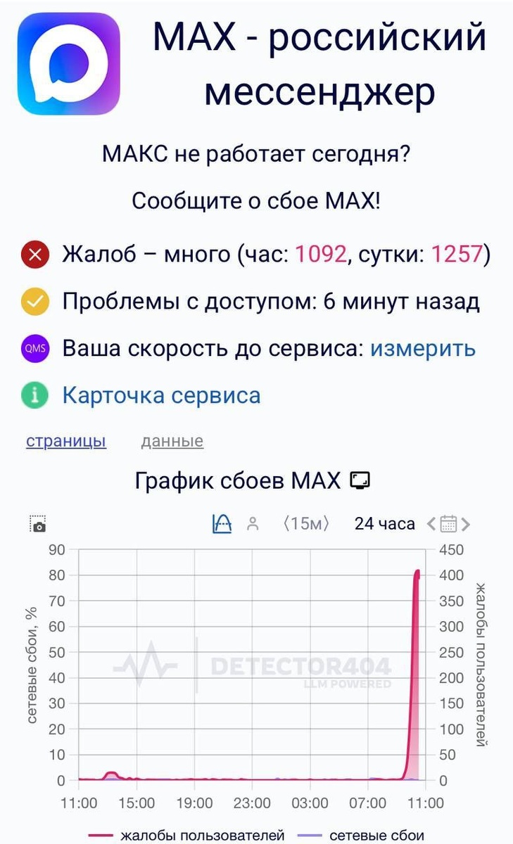 ....продолжается эпопея с "национальным" мессенджером МАХ, который на 100% принадлежит частной компании Вконтакте. Сообщается о сбое МАХ в РФ сегодня. А как у Вас? Работает? @zhuk_city