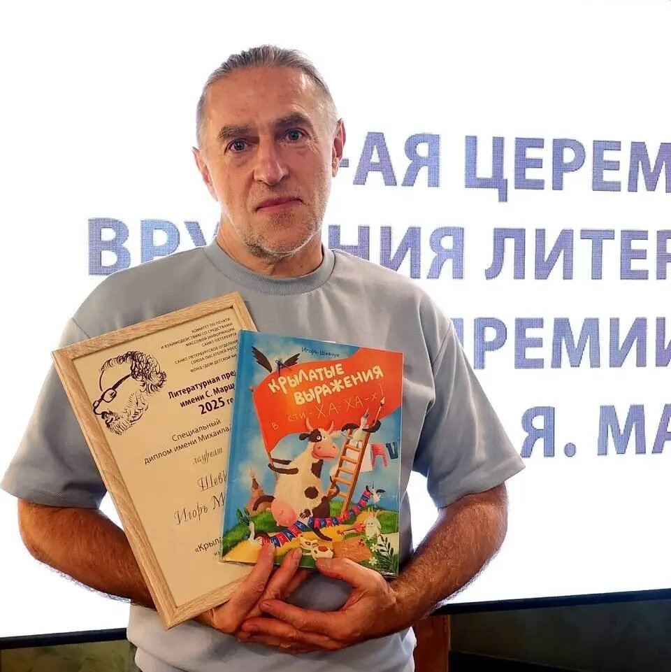 Известный поэт Игорь Шевчук стал лауреатом Литературной премии имени Самуила Маршака и получил специальный диплом имени Михаила Яснова за книгу «Крылатые выражения в сти-ха-ха-х», вышедшую в нашем издательстве.