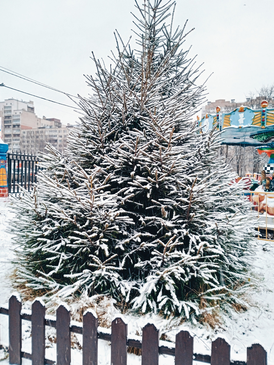 Долго не гуляла. Шел мокрый снег. Прошлась немного по парку сфотографировала ёлочки и пошла в "О'кей" за хлебом.