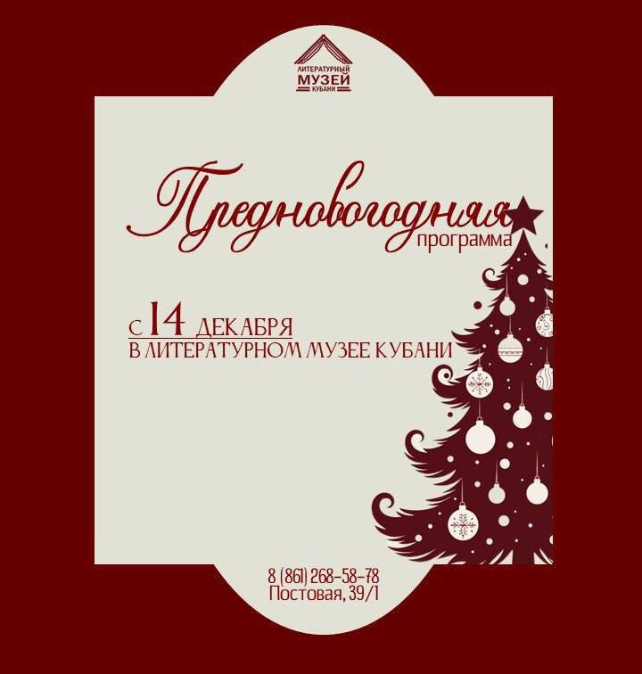 🔴Предновогодняя программа в Литературном музее Кубани С 14 декабря в музее стартует цикл праздничных лекций и творческих занятий для детей и взрослых. 🌟В программе: ❄️История Нового года и создание открыток пером и тушью 🌟Святочные традиции и роспись восковых свечей 🎀«Ночь перед Рождеством» по Гоголю с мультфильмом и обсуждением 😒Тайны рождественских рассказов ❤️История и символика ёлочной игрушки Для детей 6–16 лет — новогодние мастер-классы от музейного художника. 🎁Бонус: каждый посетитель может выиграть редкую дореволюционную открытку. 📞 По всем вопросам: 8 (861) 268-58-78 #знай_краснодар_афиша 🔗Знай Краснодар