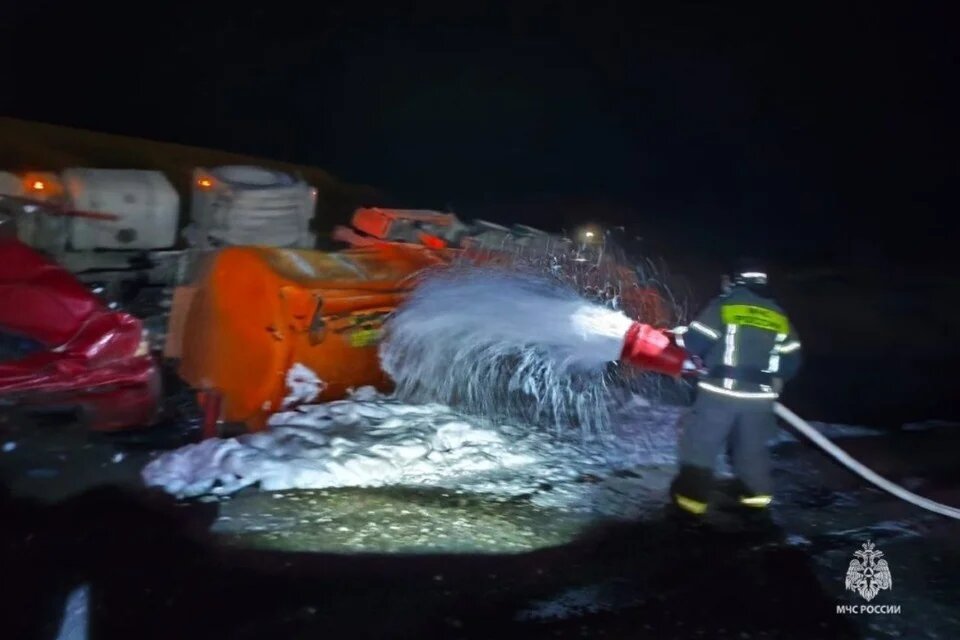 В Белокалитвинском районе днём перевернулся бензовоз, и дорога между Голубинкой и Казьминкой оказалась перекрыта. Пресс-служба МЧС Ростовской области сообщила, что машина опрокинулась прямо на проезжей части, и водители столкнулись с серьёзными затруднениями. Транспорт пошёл в обход, так как движение на участке стало невозможным. На место сразу прибыли пожарно-спасательные подразделения, и специалисты взяли ситуацию под контроль. Они проверили цистерну, исключили угрозу возгорания и создали безопасный периметр вокруг машины. Оперативные службы начали работу по устранению последствий аварии и подготовили технику для последующего перемещения бензовоза. Водитель вышел из происшествия без травм, и медики не потребовались. Представители экстренных служб продолжают координировать движение на объездных маршрутах, чтобы снизить заторы и обеспечить безопасный проезд до полного освобождения трассы.