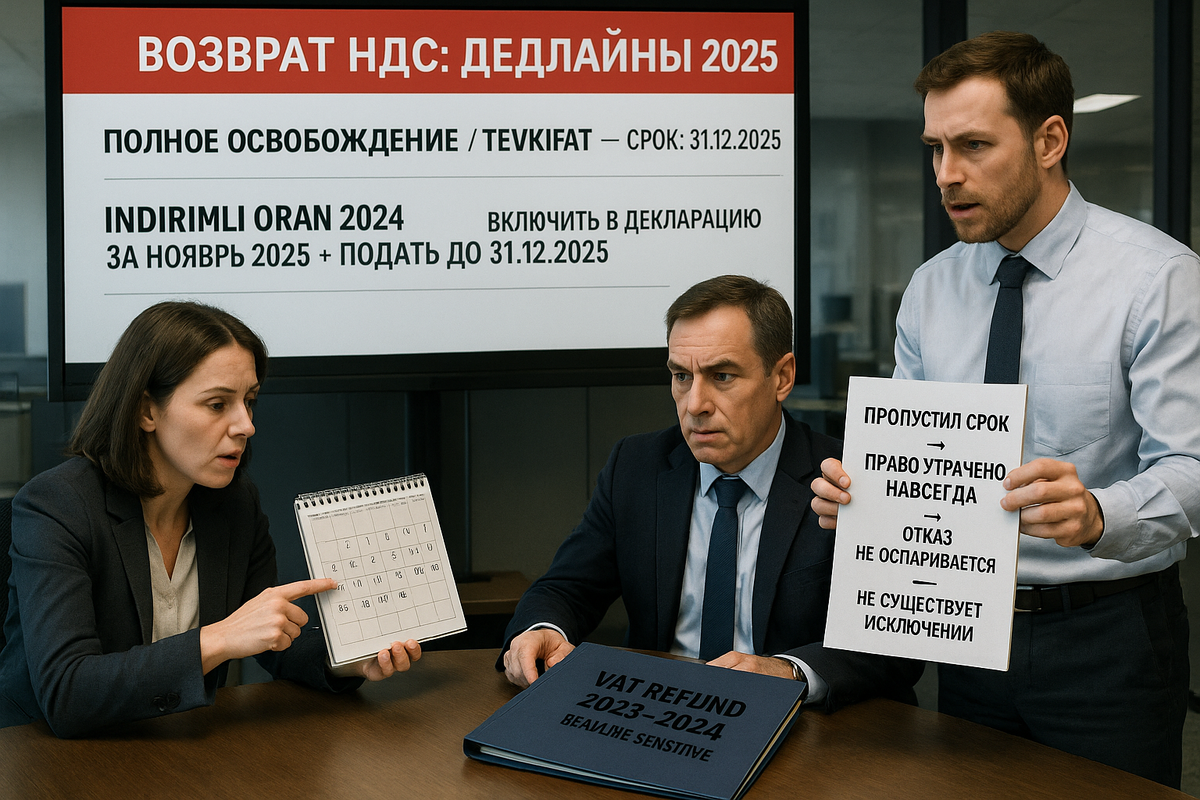 ΠΠ°ΠΊΠΎΠ½ β7104 Π²Π²ΠΎΠ΄ΠΈΡ ΠΆΡΡΡΠΊΠΈΠ΅ ΠΏΡΠ΅ΠΊΠ»ΡΠ·ΠΈΠ²Π½ΡΠ΅ ΡΡΠΎΠΊΠΈ Π΄Π»Ρ Π²ΠΎΠ·Π²ΡΠ°ΡΠ° ΠΠΠ‘. ΠΠ»Ρ Π²ΠΎΠ·Π²ΡΠ°ΡΠΎΠ² ΠΏΠΎ ΠΏΠΎΠ»Π½ΡΠΌ ΠΎΡΠ²ΠΎΠ±ΠΎΠΆΠ΄Π΅Π½ΠΈΡΠΌ ΠΈ tevkifat Π·Π° 2023 Π³ΠΎΠ΄ ΠΏΠΎΠ΄Π°ΡΡ Π·Π°ΡΠ²Π»Π΅Π½ΠΈΠ΅ Π½ΡΠΆΠ½ΠΎΒ Π΄ΠΎ 31 Π΄Π΅ΠΊΠ°Π±ΡΡ 2025 Π³ΠΎΠ΄Π°β ΠΈΠ½Π°ΡΠ΅ ΠΏΡΠ°Π²ΠΎ ΡΠ΅ΡΡΠ΅ΡΡΡ Π½Π°Π²ΡΠ΅Π³Π΄Π°. ΠΠ»Ρ Π²ΠΎΠ·Π²ΡΠ°ΡΠ° ΠΏΠΎ ΡΠ½ΠΈΠΆΠ΅Π½Π½ΠΎΠΉ ΡΡΠ°Π²ΠΊΠ΅ indirimli oran Π·Π° 2024 Π³ΠΎΠ΄ β ΡΡΠΌΠΌΡ Π΄ΠΎΠ»ΠΆΠ½Ρ Π±ΡΡΡ Π²ΠΊΠ»ΡΡΠ΅Π½Ρ Π² Π΄Π΅ΠΊΠ»Π°ΡΠ°ΡΠΈΡ Π·Π° Π½ΠΎΡΠ±ΡΡ 2025 Π³ΠΎΠ΄Π° ΠΈ Π·Π°ΡΠ²Π»Π΅Π½ΠΈΠ΅ ΠΏΠΎΠ΄Π°Π½ΠΎ Π΄ΠΎ ΠΊΠΎΠ½ΡΠ° 2025-Π³ΠΎ. ΠΠΎΡΠ»Π΅ ΠΠΎΠ²ΠΎΠ³ΠΎ Π³ΠΎΠ΄Π° Π½Π°Π»ΠΎΠ³ΠΎΠ²ΡΠΉ ΠΎΡΠ³Π°Π½ ΡΠ°ΠΊΠΈΠ΅ ΠΎΠ±ΡΠ°ΡΠ΅Π½ΠΈΡ Π½Π΅ ΠΏΡΠΈΠ½ΠΈΠΌΠ°Π΅Ρ. π― ΠΠΎΠ·Π²ΡΠ°Ρ ΠΠΠ‘ β ΡΡΠΎ Π΄Π΅Π΄Π»Π°ΠΉΠ½, Π° Π½Π΅ ΡΠΎΡΠΌΠ°Π»ΡΠ½ΠΎΡΡΡ. Π§ΠΈΡΠ°ΠΉΡΠ΅ ΠΏΠΎΠ»Π½ΡΡ Π²Π΅ΡΡΠΈΡ Π² Π½Π°ΡΠ΅ΠΌ Π±Π»ΠΎΠ³Π΅. ΠΡΠΆΠ½Π° ΠΏΠΎΠΌΠΎΡΡ Π² ΠΏΠΎΠ΄Π³ΠΎΡΠΎΠ²ΠΊΠ΅ Π²ΠΎΠ·Π²ΡΠ°ΡΠΎΠ² Π΄ΠΎ ΠΈΡΡΠ΅ΡΠ΅Π½ΠΈΡ ΡΡΠΎΠΊΠΎΠ²?Β ΠΡΡΠ°Π²ΡΡΠ΅ Π·Π°ΡΠ²ΠΊΡ Π½Π° ΠΊΠΎΠ½ΡΡΠ»ΡΡΠ°ΡΠΈΡ. #Π½Π΄Ρ #Π½Π°Π»ΠΎΠ³ΠΈΠ²ΡΡΡΡΠΈΠΈ #Π±ΠΈΠ·Π½Π΅ΡΠ²ΡΡΡΡΠΈΠΈ #ΡΠΈΠ½Π°Π½ΡΡ #Π²Π°ΠΆΠ½ΠΎ