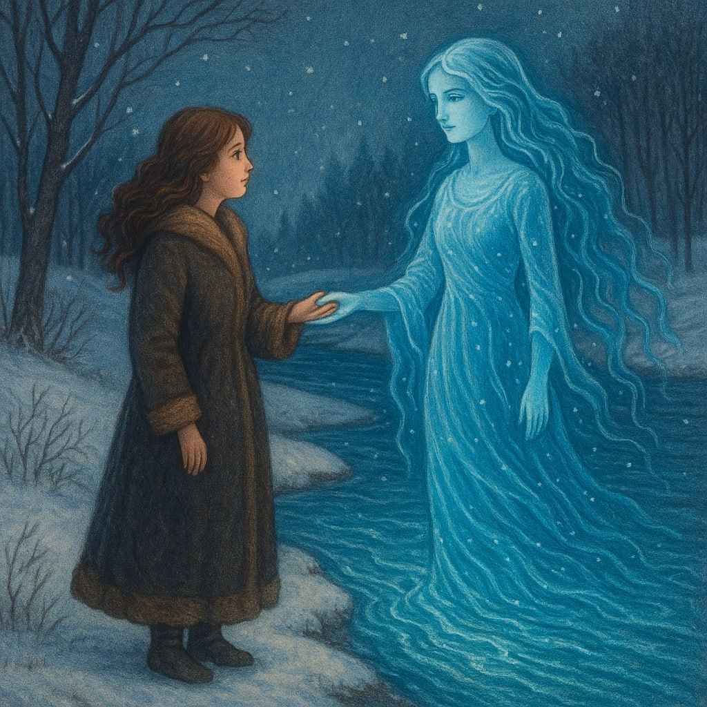 ✨ Сказка о Волшебнице Элине и Духе Живой Воды (продолжение сказки) После встречи с Наставницей Теней Элина стала видеть мир по-другому. Слова стали приходить к ней сами — как птицы, слетающиеся на ладонь, на которую насыпали спелого вкусного зерна. Но однажды случилось нечто, что открыло ей новый дар. В начале зимы Элина сидела у окна и писала сказку для девочки, которая боялась метели. Сказка была тёплой, как пушистый плед. Но вдруг пальцы сказочницы замерли над клавиатурой на полуслове. Будто кто-то звал её издалека — тихо, но настойчиво. Она встала, накинула шубку и пошла — сама не зная куда. Снег искрился под ногами, как крошечные звёзды. Давненько не было такой правильной зимы – морозной, с поскрипывающим под ногами чистым свежим снежком. И вскоре Элина оказалась у той самой реки, где повстречалась с Логикой Рода. Но теперь река была другой. Поверхность её покрывал лёд, но на быстринах он истончался и под ним струился живой серебристый поток — словно сама вода светилась изну