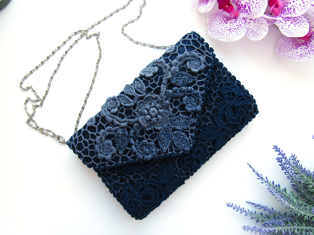 В заключении покажу ещё пару своих работ. Декор готовой сумочки - хорошее решение, если Вы не умеете шить и работать с фурнитурой, но хотите вечернюю сумочку с кружевом ручной работы.