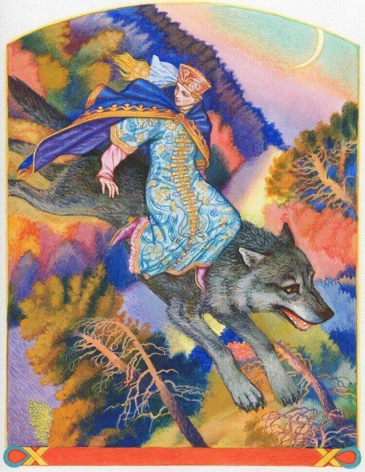 На меня скорей садись И покрепче лишь держись Словно устали не знали День и ночь потом скакали Солнце встало уж в зенит Волк : Ну так в общем Без обид Мы от цели в двух верстах Посиди Иван в кустах Что бы снова не попался Веришь нет , я з........ ! Каждый раз всё исправлять . Только об одном прошу Не спать ! Я помчал , я не надолго Стал Иван в кустах ждать волка . На поляне у фонтана Где Елена отдыхала Бабки , няньки и лакей Все кружились перед ней . На ковре стояли Яства а по центру Ананас Лакей : Вот отведайте Лангуста . Пойман только что Сейчас Наклонился над Еленой Чтобы вот на грудь Взглянуть И нечаянно подумал : Вот бы этой сучке вдуть !