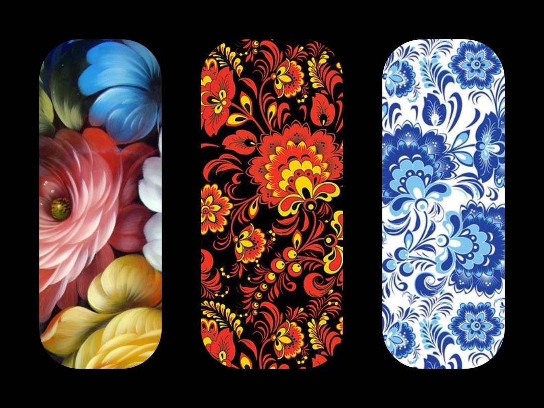 🔴⚫🟡Хохлома — красно-чёрно-золотая деревянная посуда и утварь с пышными, словно ковровыми, растительными орнаментами. Роспись плоская, без объёма.