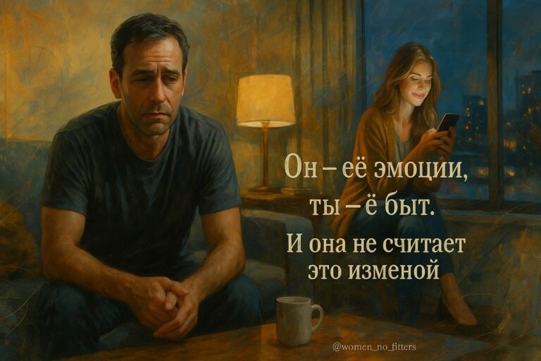 Это перераспределение энергии. Она не кладёт тебе руку на плечо — там уже виртуально его ладонь. Почему она не считает это изменой Потому что