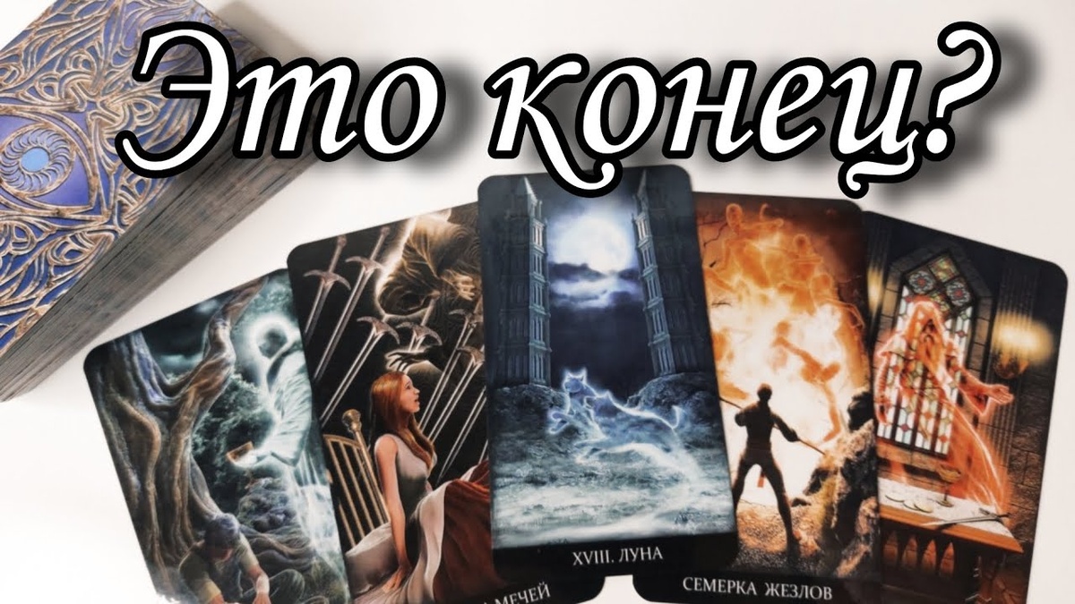Карты: Колесо Фортуны, Восьмёрка мечей, Пятёрка мечей, Башня, Королева мечей