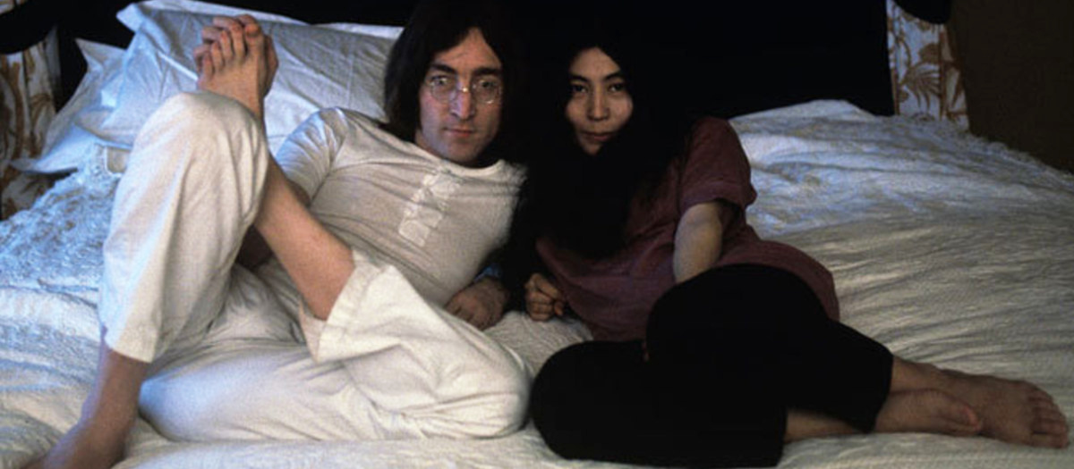 Свой медовый месяц влюбленные провели в Амстердаме. Там же прошла их знаменитая "лежачая демонстрация борьбы за мир" — в президентском люксе отеля Hilton они были принимали журналистов со всего мира в любое время суток. Многие журналисты отправились туда за громкими заголовками и скандальными фото, однако увидели они совсем не то, чего ожидали. Вокруг молодоженов было множество цветов и антивоенные плакаты. Музыкант и художница заявили, что всю неделю проведут в кровати во имя "мира во всем мире" и будут говорить с журналистами о политике, чтобы их послание было услышано.