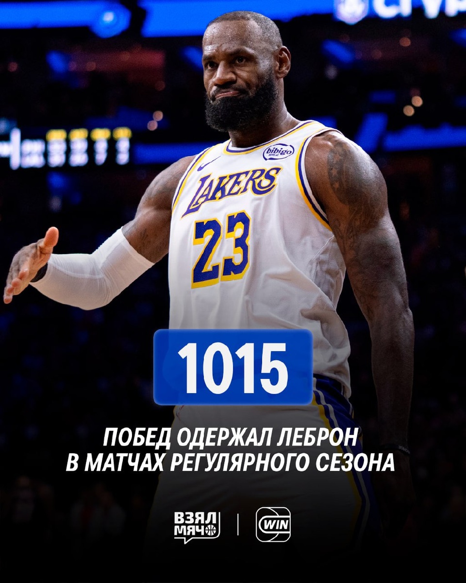 💪🏻 Леброн Джеймс продолжает переписывать историю! Форвард поднялся на второе место по количеству побед в регулярке. Сегодня он обогнал легенду «Бостона» Роберта Пэриша (1014) и уступает только Кариму Абдул-Джаббару (1074). Леброну осталось выиграть 60 матчей, чтобы превзойти великого центрового. В топ-10 этого списка есть всего один действующий игрок помимо Джеймса — Крис Пол. 🏀 ПОДПИШИСЬ — ЗДЕСЬ ЖИВЁТ БАСКЕТБОЛ!