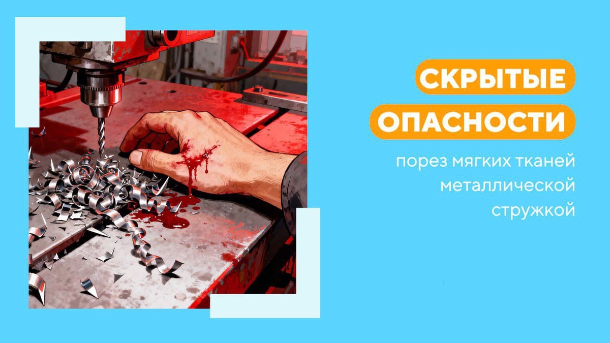👀❗️Скрытая угроза: металлическая стружка на производстве 📌 Металлическая стружка, образующаяся при механической обработке металлов, часто недооценивается как источник микротравм, но порезы ею вызывают сильное кровотечение, воспаления и инфекции из-за острых кромок, бактерий и загрязнений вроде масел. Такие травмы мягких тканей требуют немедленной обработки и могут привести к абсцессам или хроническим осложнениям, особенно без своевременного вмешательства. Почему стружка особенно опасна? ▪️ Острые края стружки легко проникают через кожу, вызывая глубокие раны, а примеси (металлические частицы, СОЖ) затрудняют заживление и повышают риск заражения. ▪️ Стружка отлетает на 3–5 метров, поражая глаза, лицо и руки, особенно при скоростной обработке вязких металлов или хрупких материалов вроде чугуна. ▪️ Игнорирование мелких порезов приводит к нагноению; анализ травм показывает, что 100% случаев связаны с отсутствием СИЗ или уборки. Первая помощь при порезе ▫️ Наложите стерильную салфетку
