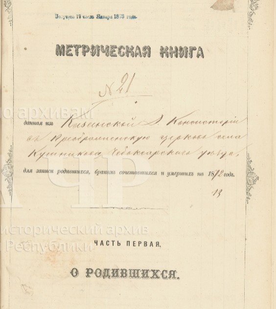 Село Кушниково. Метрическая книга о родившихся за 1863-1884 гг. ГИА Чувашской Республики (ГИА ЧР), фонд № 557, опись № 8, дело № 130, стр. 186 скан. Метрическая книга, данная из Казанской Духовной Консистории в Преображенскую церковь села Кушникова Чебоксарского уезда для записи родившихся, браком сочетавшихся и умерших на 1872 год. Часть первая. О родившихся. Стр. 189 скан. Март. № 7. 29 февраля родилась. 7 числа крещена. Антонина. Родители: Села Кушникова Преображенской церкви священник Алексей Петров Соловьев и законная жена его Евдокия Александрова, оба православного исповедания. Восприемники: Ядринского уезда села Вылы священник Александр Александров Икрин и того ж уезда села Сормы умершего священника Александра Александрова Икрина дочь девица Екатерина Александрова. Священник Алексей Соловьев. Дьячек Александр Смирнов. Пономарь Михаил Аристархов. https://yandex.ru/archive/catalog/9c50435a-f887-4349-b44a-6ea80e326f2c/189