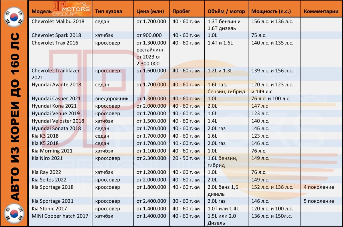 ? 🇰🇷 Мы подготовили для вас список моделей, которые не попадают под утилизационный сбор и разрешены к вывозу. Обратите внимание на эти автомобили! Список из Китая / Список из Японии ВСЕ ЭТИ АВТО МОЖНО ЗАКАЗАТЬ В JP MOTORS GROUP и легально ввезти в РФ без переплаты утиля! Все цены указаны полностью со ВСЕМИ расходами до РФ, таможней и утилем. Цены могут варьироваться из‑за изменений курса, поэтому уточняйте у наших менеджеров. Также по годам рассмотрим по факту обращения. И не забудьте поставить 👍, если хотите увидеть такие же списки авто из Японии и Китая. ⏩ЗАКАЗАТЬ любой из этих авто: Рассмотреть актуальные варианты: ЗДЕСЬ! Наш канал в MAX