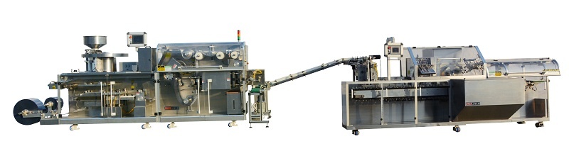 Современное оборудование с высокой автоматизацией. Упаковочная линия состоит из блистерной машины DPH260 и картонажной машины ZH300. Подходит для работы со всеми твердыми лекарственными препаратами и популярными материалами. В большей степени предназначена для фармацевтической промышленности. Отличается инновационной системой соединения блоков, легкой интеграцией, возможностью дооснащения под задачи клиента. Основные максимальные показатели: производительность 180 коробок в минуту, время непрерывной работы 90 минут, диаметр катушки с формующейся пленкой 600 мм. Линия DPH260-ZH300 объединяет несколько этапов производства упаковки в автоматическом режиме: формовку блистеров, заполнение ячеек продуктом, герметизацию. Выполняет стандартное закрытие коробок заправкой клапанов и термосклеиванием. Основные технические параметры блистерной машины DPH260: Картонажная машина ZH300 характеризуется следующими параметрами: Особого внимания заслуживает центральный блок, место соединения блистерной и