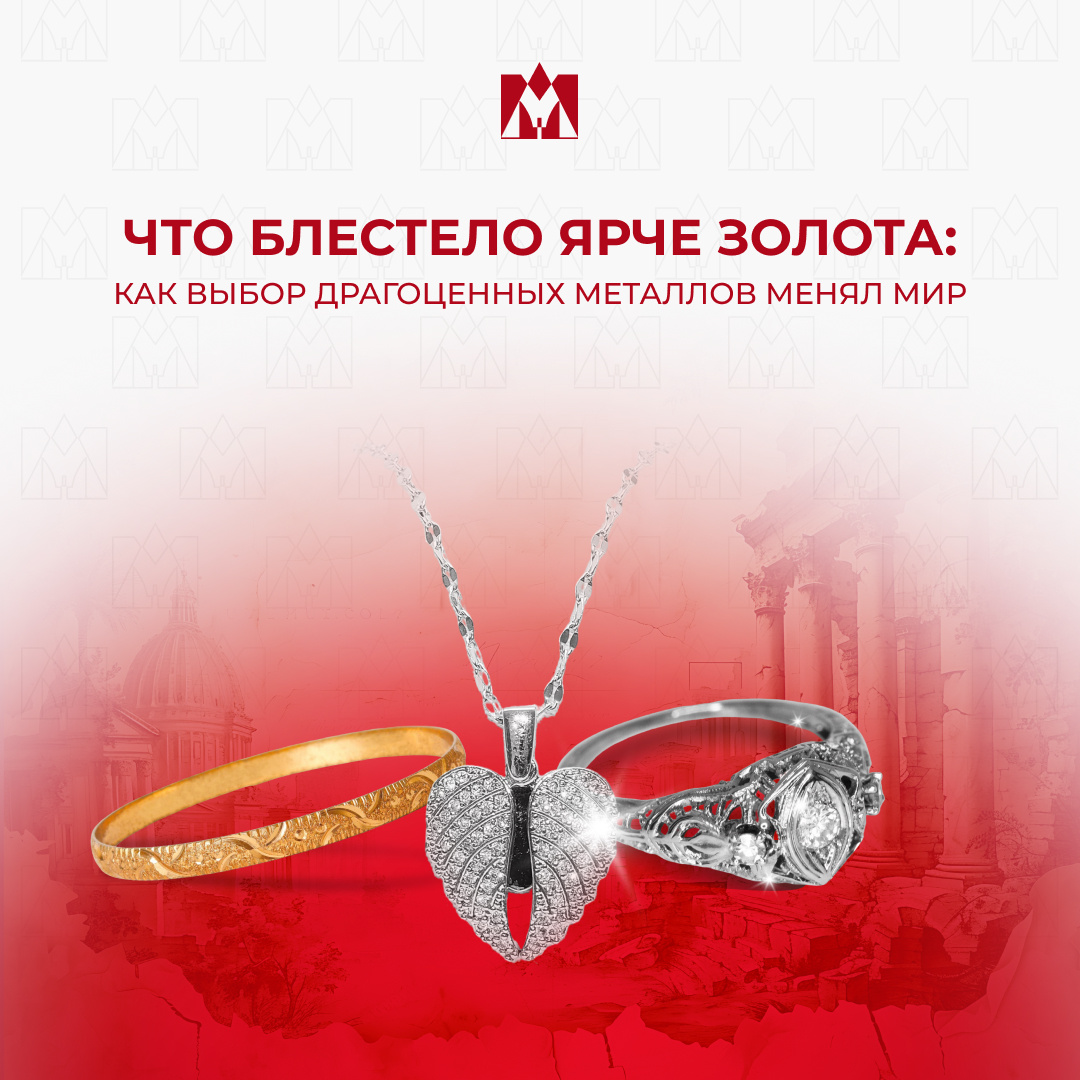 Представьте роскошный стол, на котором лежат три предмета: массивный золотой браслет древнего мастера, платиновая подвеска в духе голливудских сороковых и серебряное кольцо, будто только что купленное на блошином рынке Берлина. Все три блестят одинаково ярко — но их путь в историю был совершенно разным. Почему одни цивилизации молились на золото, другие — на серебро, а третьи считали платину бесполезной примесью? Выбор металла всегда был больше, чем выбор украшения. Он отражал страхи эпохи, её экономику, моду, а иногда — её политику и технологии. Золото: металл, который правит нами уже 6 тысяч лет Для древних цивилизаций золото было почти сверхъестественным: 1️⃣ Оно не тускнело 2️⃣ Оно было мягким, послушным, идеальным для тончайших узоров 3️⃣ И, главное, было редким. Настолько редким, что фараоны буквально хоронили с собой целые золотые комнаты. Римляне верили: золото — это солнечный свет, которого можно коснуться. Древние майя — что это потёки божественной крови. Индийские раджи — ч