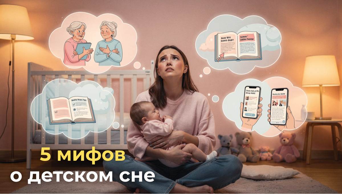 Я слышу эти фразы каждый день. От клиентов, от знакомых, из комментариев в соцсетях. "Чем позже уложу - тем дольше проспит", "Само пройдёт", "Плакать вредно". Хочу сказать честно: эти мифы - главная причина родительского недосыпа 😫 Они звучат логично, их передают из поколения в поколение. Но наука говорит обратное. Разберём 5 самых живучих мифов о детском сне - и объясню, почему они не работают. Миф 1: "Чем позже уложу - тем дольше проспит" ⏰ Логика понятна: устанет сильнее - дольше поспит. Но детский организм работает иначе. Когда ребёнок перегуливает (бодрствует дольше нормы), организм воспринимает это как стресс. Вырабатывается кортизол - гормон стресса, который бодрит. Ребёнок становится перевозбуждённым. Результат? Долго не может уснуть, спит беспокойно, просыпается раньше. Переутомление = плохой сон. Всегда. Что работает: укладывать по признакам усталости (до 5 месяцев) или по биоритмам (с 5 месяцев). Время вечернего укладывания начинается с 18:00-20:00, в зависимости от возр