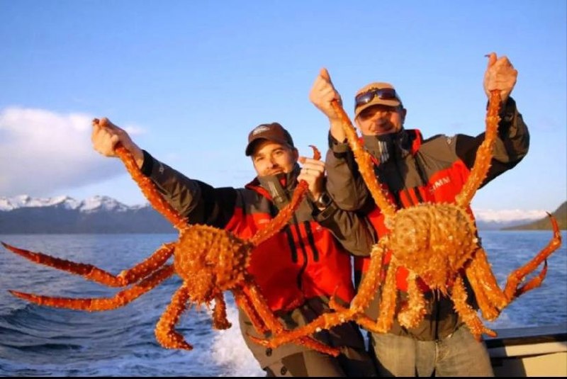 🦀🦀🦀 КАМЧАТСКИЙ КРАБ 🦀🦀🦀 Камчатский краб — один из самых крупных представителей современных членистоногих, обитающий в холодных водах Тихого океана и Охотского моря. Его мясо считается деликатесом благодаря нежному вкусу и высокой питательной ценности. 🦀 ОПИСАНИЕ и ОСОБЕННОСТИ 🦀 ✅ Длина карапакса (головогруди) может достигать 28 см, размах ног — до 1,8 м, а вес — более 12 кг. ✅ Тело покрыто толстым панцирем с шипами для защиты. У самцов брюшко асимметричное, у самок — симметричное. ✅ Цвет живого краба варьируется от желтовато-песочного до бордового, при варке конечности и панцирь становятся ярко-красными.