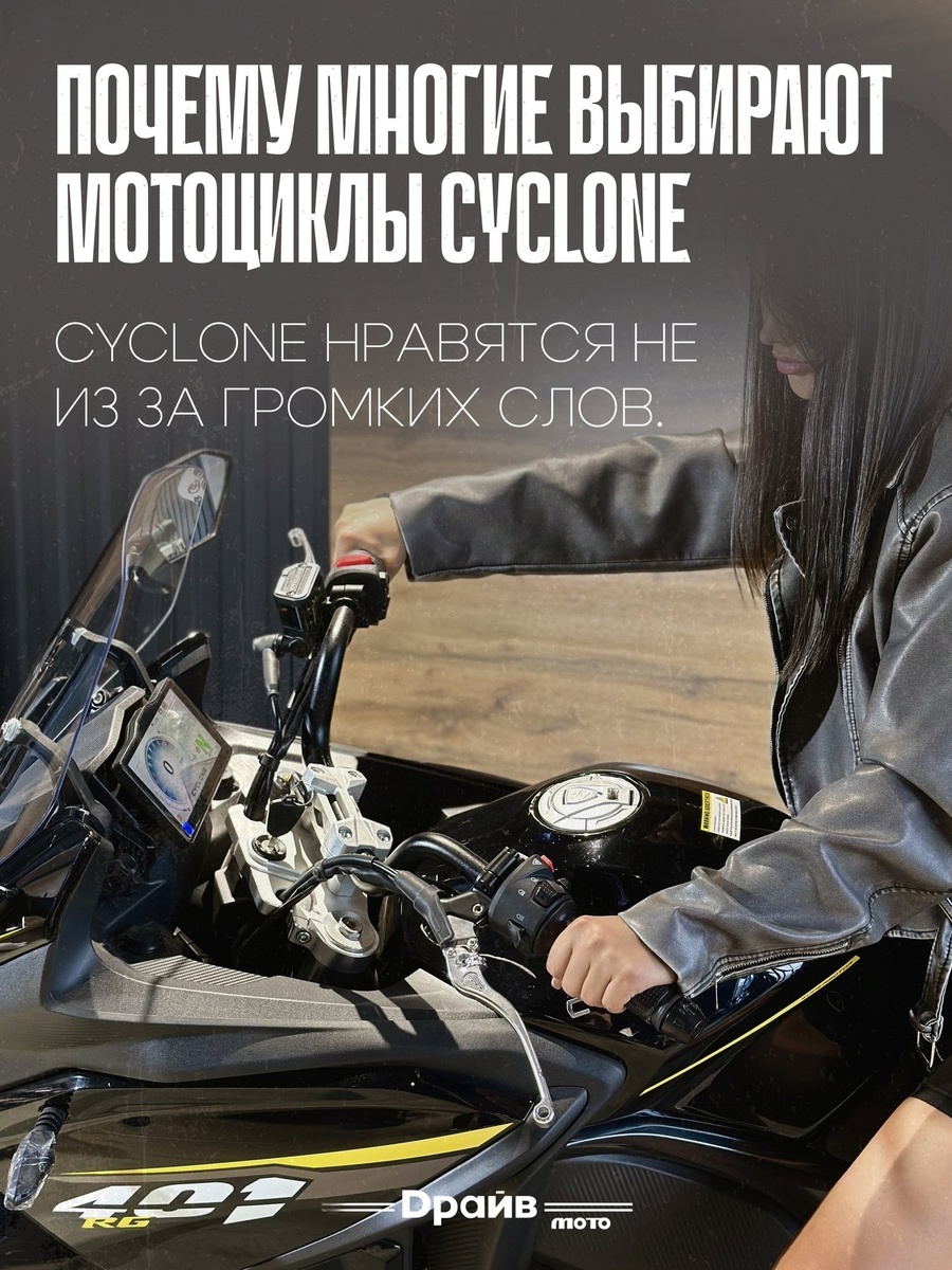 Cyclone нравятся не из за громких слов. Их берут потому, что они понятные. Сел, поехал и не тратишь время на привыкание. Все работает так, как ожидаешь, без сюрпризов и странных решений. Моторы у Cyclone тянут ровно. Нет дерганий, нет ощущения, что мотоцикл живет своей жизнью. В городе ехать комфортно, на трассе спокойно. Это не техника для понтов, а для обычной езды каждый день Оснащение тоже радует. ABS, круиз контроль, нормальная приборка, свет. Все на своих местах и реально используется. Не нужно переплачивать за опции, которые потом не включаешь Еще один момент, управляемость. Мотоциклы уверенно держат дорогу и прощают ошибки. Это особенно важно тем, кто не хочет каждый выезд превращать в экзамен И главный плюс, цена. Cyclone дает ощущение хорошего мотоцикла без переплаты за бренд. За свои деньги это честный вариант, который просто делает то, что должен. Cyclone выбирают те, кто хочет ездить спокойно и получать удовольствие, а не привыкать к технике месяцами.