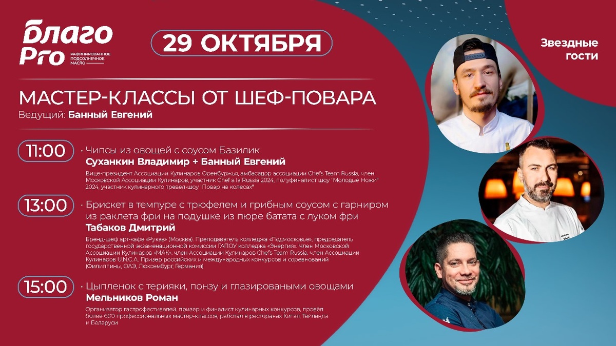 Мы готовы! К 10:30 начали подтягиваться первые гости. Я взял микрофон 🎤, рассказал, что ждёт посетителей на нашем стенде — какие звёздные шефы будут выступать и что готовить. ⭐ ПЕРВАЯ ЗВЕЗДА ДНЯ — МИТРОШЕНКО АНАСТАСИЯ 🌟 Молодая, яркая, амбициозная!