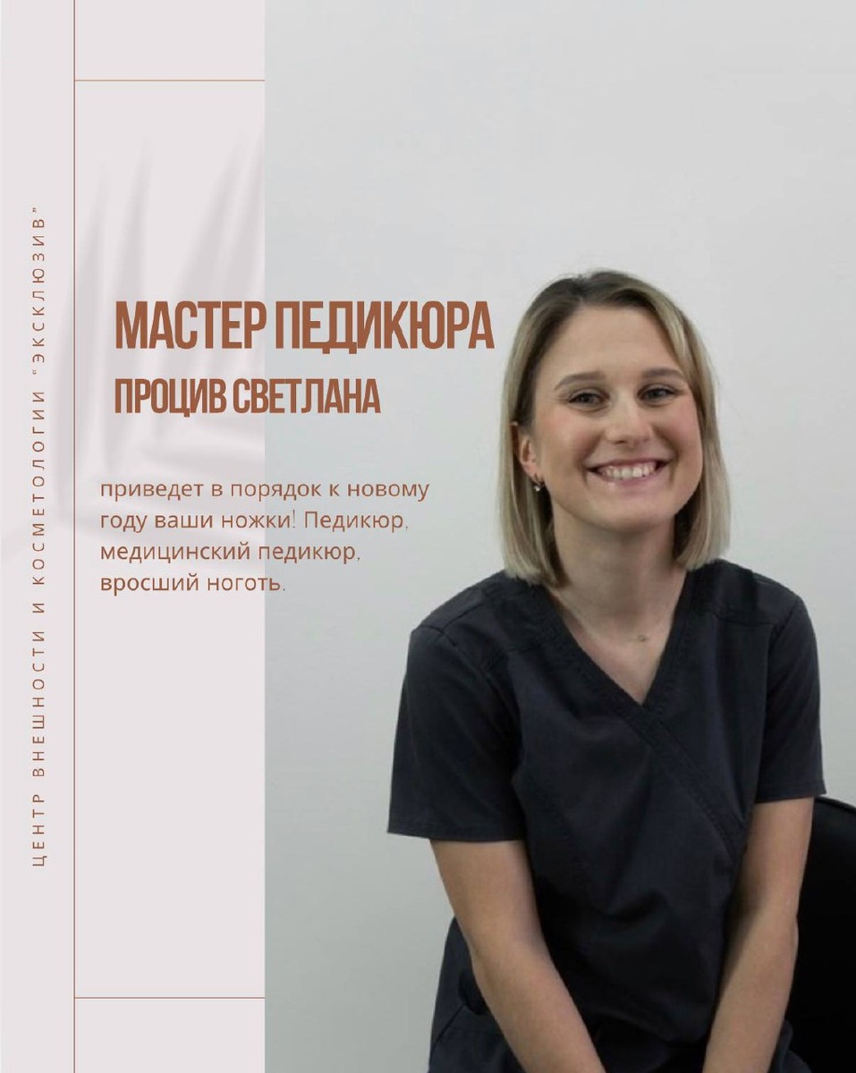 Знакомьтесь — наш новый мастер педикюра! С радостью представляем вам нового специалиста в нашей команде — мастера медицинского педикюра - Светлану 👣 🔹 Работа с проблемными стопами 🔹 Вросший ноготь — бережно, безопасно и эффективно 🔹 Покрытие плёнкой — аккуратно, современно и долговечно Наш мастер работает не только на красоту, но и на здоровье ваших ног. Индивидуальный подход, стерильность, внимание к деталям и забота о вашем комфорте — всё это вы получите на приёме 💙 Если вы давно откладывали визит из-за дискомфорта или сложной проблемы — сейчас самое время записаться. wa.me/79612353763 https://dikidi.net/170165?p=0.pi @exclusive_barnaul