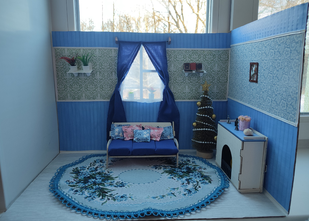В последнее время я редко заглядываю в дзен, иногда залетаю, что бы почитать статьи про ваших кукол, но парой даже на это нет времени. Да и свои статьи я выкладываю теперь крайне редко, если честно неохотно делать куклам фотосессии, как то под устала я от этого, и вместо этого я ударилась в рукоделие. Долго конечно на меня смотрел недоделанный румбокс "гостиная" который я начала делать ещё весной, и кроме окна и стен с полом ничего не сделала, и в итоге взяв себя в руки я решила довести начатое до конца. И получилось у меня все именно так как я и задумывала изначально. Если кто не помнит, или читает об этом моем увлечении впервые вот статьи о том, как все было изначально: Ну и вот теперь я готова продемонстрировать вам конечный результат. Я поставила румбокс на подоконник, плотно прислонив окно румбокса к стеклу окна, что бы получилось ощущение настоящей зимы за окном. Пока я все это расставляла конечно же солнышко спрятались за облаками🥴 Освещение получилось не очень, но я