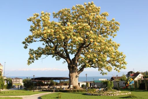 Представьте: дерево высотой с 12-этажный дом, которое видело Кавказскую войну, революцию и все еще живо в наше время. Оно цветёт огромными жёлто-зелёными цветами, похожими на тюльпаны. Хотите увидеть это чудо? Тогда вам в посёлок Головинка под Сочи — к одному из старейших экзотических деревьев России!