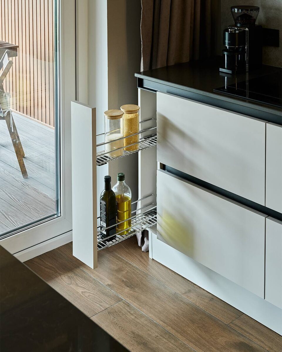 Узкий пенал между техникой: как использовать 15 см для хранения специй или техники