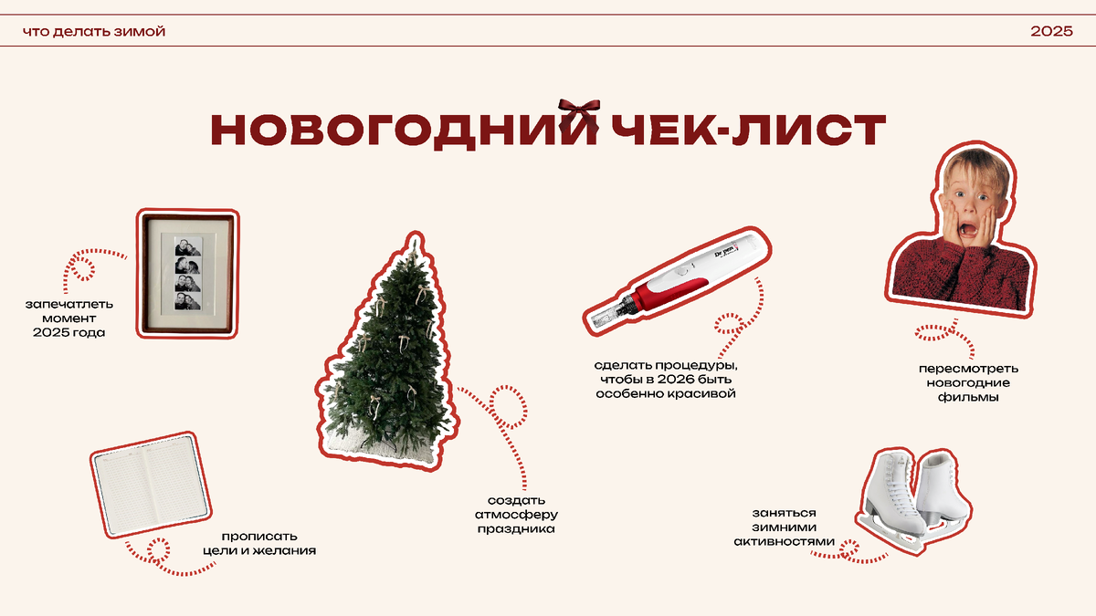 Мы считаем, что главное в декабре – создать новогоднее настроение! Поэтому мы будем делать для этого все: фильмы, активности, украшения, ритуалы... Давайте вместе создавать праздник вокруг себя, делать каждый день особенным и, конечно, заботиться о себе и своей коже! Что уже успели сделать из этого чек-листа? Больше информации в наших социальных сетях: VK, Telegram