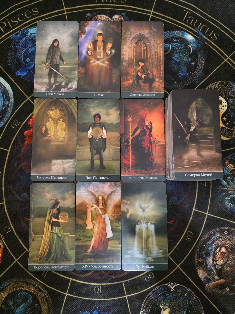 1. Начало: В голове у него бардак и идеи! 💭 Паж Мечей + Маг: Всё началось с мысли... 🤔 А потом эта мысль превратилась в грандиозный план! 🪄 Он что-то задумал, причём основательно. Возможно, это план, как наконец-то отвезти тебя на тот самый отдых, о котором ты мечтаешь... Вариантов много, но энергия налицо! 2. Немного грусти-тоски (но он справляется!) 💪😩 9 Жезлов: Он чувствует себя как рыцарь после битвы с драконом (или с начальником-тираном). Усталый, но гордый и всё ещё стоящий на ногах. Он уже почти у цели, но силы на исходе. Ему срочно нужна поддержка... и твоя знаменитая лазанья! 5 Пентаклей: А потом накатила тоска 🥺. Ему могло показаться, что его никто не понимает, и он остался один в холодном мире без горячих обедов (и твоих объятий). Классический "меня никто не любит" саж, который быстро проходит после твоего звонка. 3. Он вспоминает о тебе и всё меняется! 👑 Паж Пентаклей: Он решил, что хватит ныть! Пора взяться за ум. Возможно, он записался на курсы по... эээ... ско