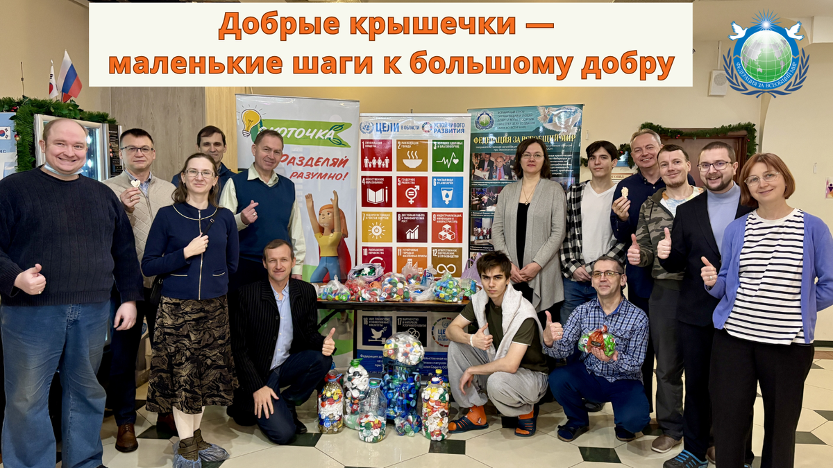 14 декабря в Москве Федерация за всеобщий мир при партнёрстве АНО «Молодёжь и студенты за мир» провела акцию «Добрые крышечки». Участники принесли пластиковые крышечки для дальнейшей переработки, а встреча получилась не только полезной, но и по-настоящему семейной — с викториной и творческим мастер-классом. Проект «Добрые крышечки» — российская эколого-благотворительная волонтёрская инициатива в области раздельного сбора. Переработка пластика помогает снижать вредные выбросы и улучшать экологическую обстановку. При этом пластик при неправильной утилизации может быть опасен для окружающей среды — поэтому так важно сортировать и передавать его в переработку.