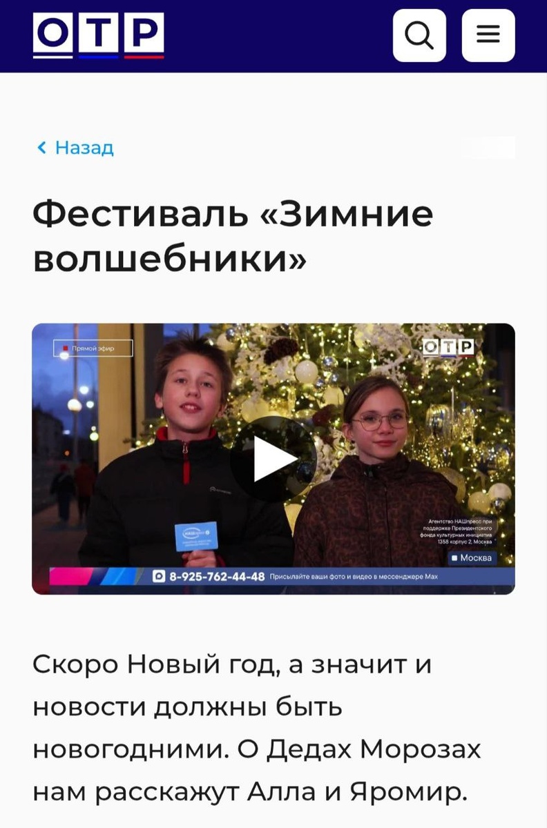 Как угнаться за юнкорами студии журналистики 1358? Да никак, за ними нужно хотя бы успевать следить. Сегодня они расскажут вам о празднике "Зимние волшебники", сюжет об этом вышел на канале ОТР в программе "Все-по взрослому". В кадре Яромир Фатеев и Алла Ильина, за кадром с камерой в руках Даниил Бурый. Репортаж ребят на ОТР смотрите по ссылке Руководитель студии журналистики 1358 Элена Владимировна Мусаелян #школа1358 #ДОНМ #ТалантливыеДетиМосквы