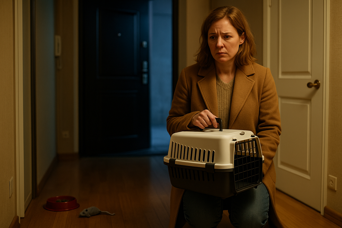 И вот входит женщина — лет сорок пять, аккуратная, в пальто, которое она явно выбирала не «на эмоциях», а «чтобы служило». Держит переноску двумя руками, как горячую кастрюлю. Глаза сухие, но лицо такое, будто слёзы уже где-то рядом и просто ждут, когда им дадут разрешение.